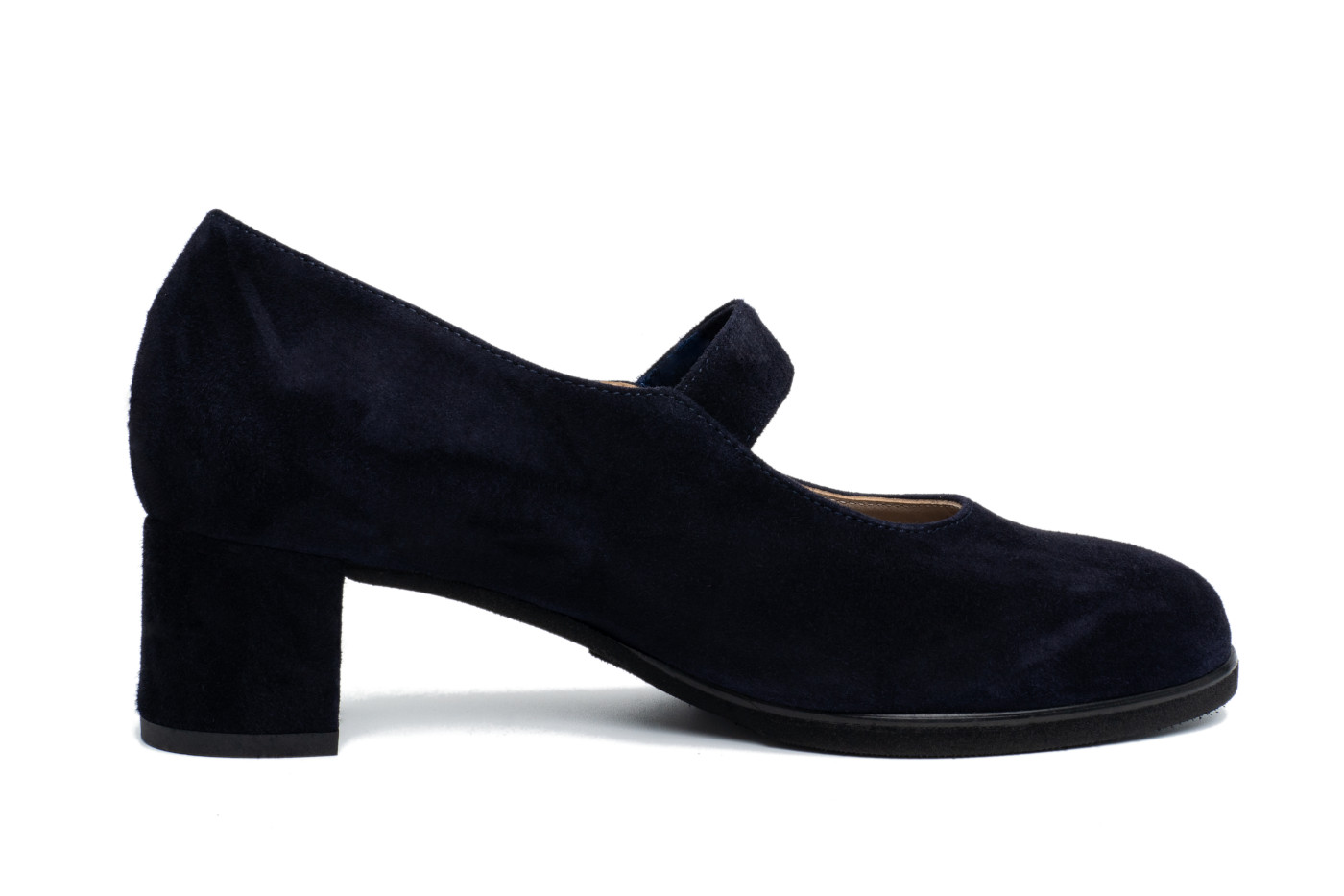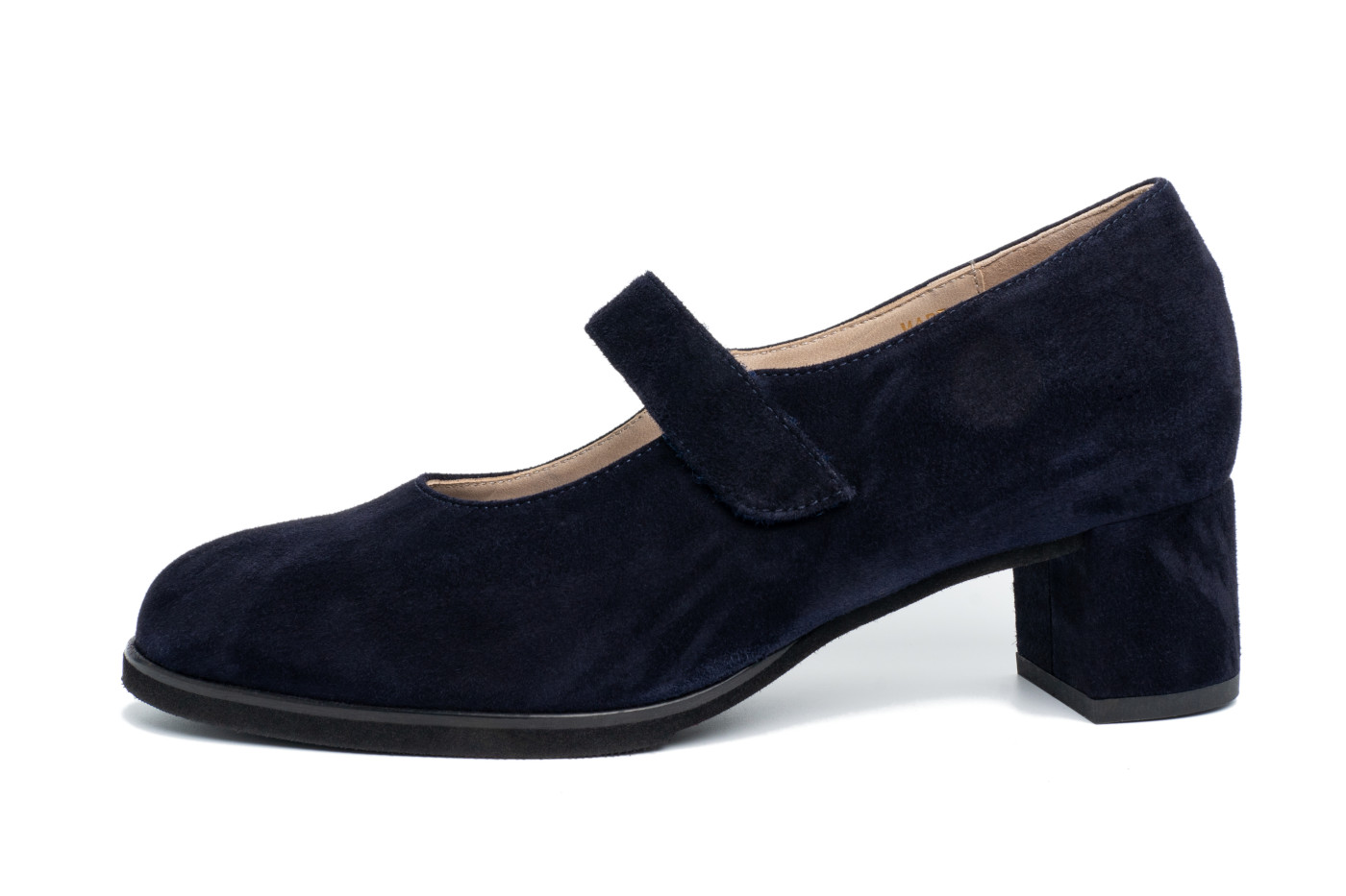 Alfonsa è una scarpa con tacco di altezza media ricoperto in pelle, dalla forma capiente e con punta slanciata. Ha una suola antiscivolo con mescola in gomma molto durevole ed una regolazione sul collo con velcro.