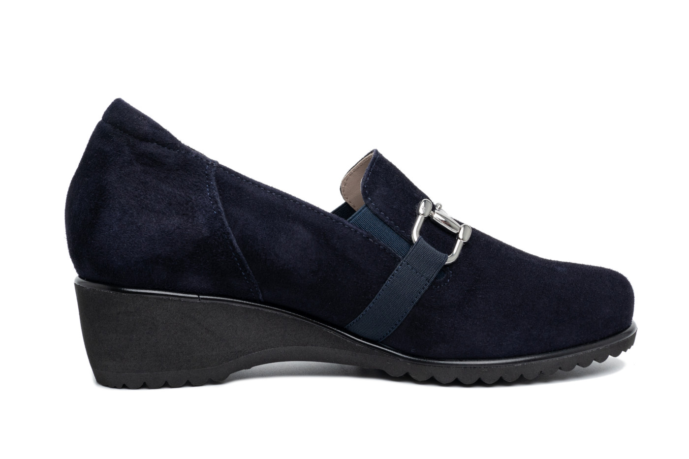 Elianto è un mocassino morbido, flessibile, elegante e classico, con una calzata molto ampia, linee delicate e una zeppa di 3,5 realizzata con materiali antiscivolo. Al suo interno ha uno spazio adeguato per il contenimento di un plantare personalizzato.